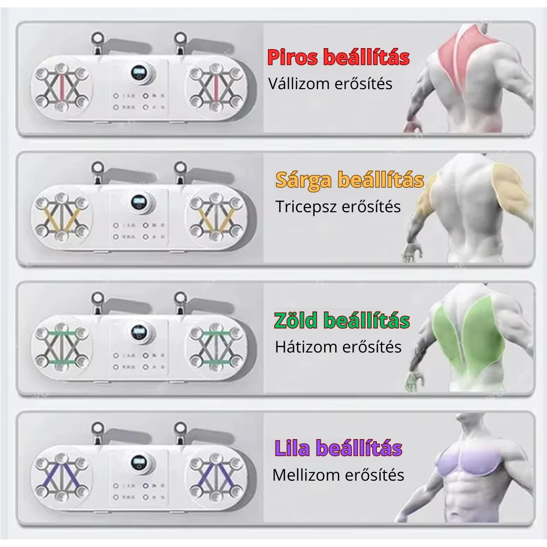 További jellemzők: digitális kijelző, rugalmas ellenállási kötél, több pozícióban fogható karok.