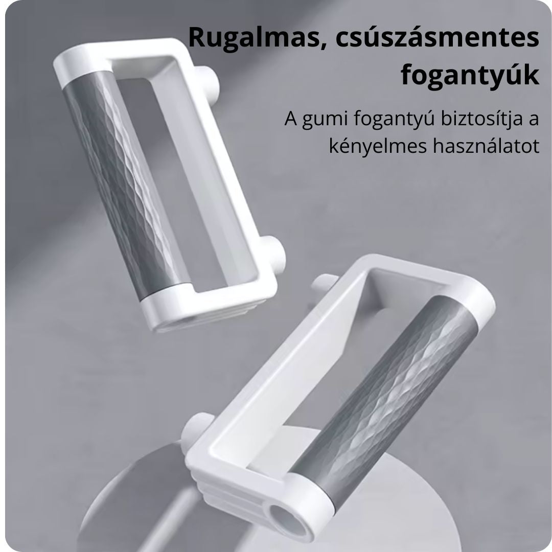 A mellékelt fekvőtámasz fogantyúk további erősítési lehetőségeket kínálnak, bővítve a gyakorlatok körét és támogatják hogy csuklófájdalom esetén is elvégezhető legyen a gyakorlat